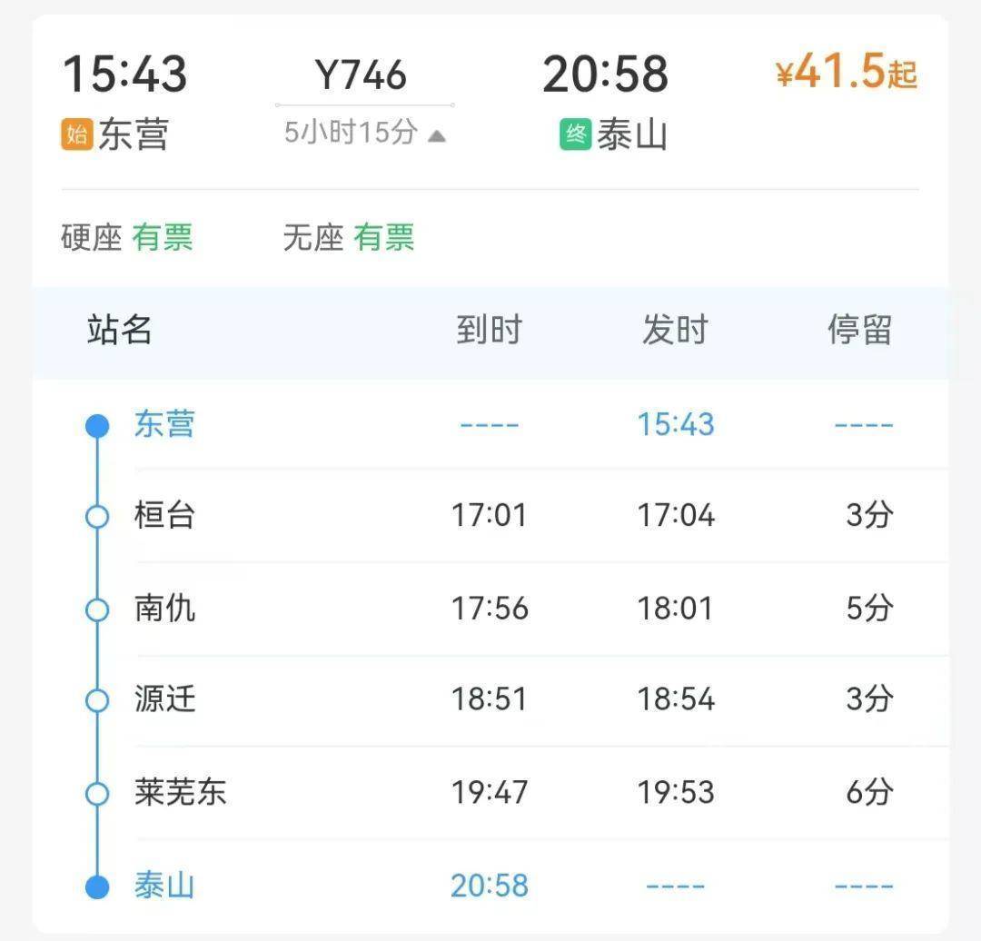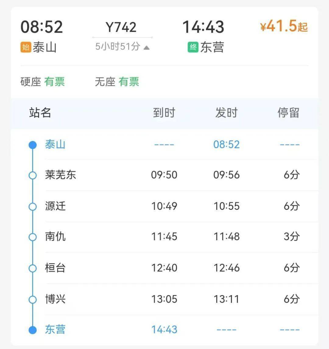 “泰山黄河号”旅游列车分为Y742/3次列车和Y746/7次列车。其中Y742/3次列车由泰山站开往东营站,并在桓台站进行Y742次-743次的列车车次号变更;Y746/7次列车由东营站开往泰山站,并在南仇站进行Y746次-747次的列车车次号变更。